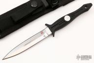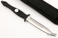 This Shadow I from Al Mar Knives features a doubled edge dagger style satin finished blade, .142" blade stock and .747" blade depth. The handle is comprised of zytel over hidden tang construction with lanyard hole in pommel. Comes with black nylon sheath. Excellent condition.