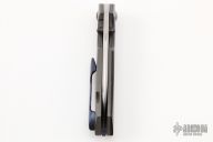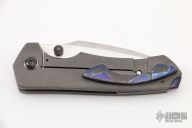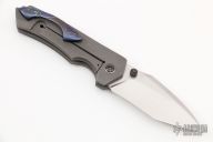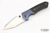 This Sonic High from Brian Efros features a drop point recurve tanto blade with dual darkened thumbstuds. The handle is comprised of a bead blast finish titanium frame, Dark Ti bolster, titanium pivot collars, and linen micarta scales. Dark Ti backspacer, and Dark Ti clip positioned for tip up carry. Very nice action, detent, and blade seating. Comes with Zippered case. Excellent condition. Discontinued model; this is the last one produced by Brian.