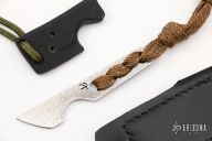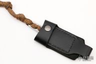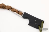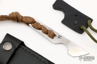 This Kiridashi from Fred Perrin features a chisel ground blade with .119" blade stock and .719" blade depth. The handle has cord wrap and a lanyard hole in pommel. Includes kydex neck sheath and a black leather sheath. Excellent condition.