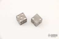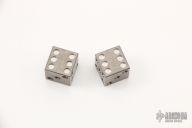 This pair of titanium dice are bead blast finished. They are stamped "UNDEAD DICE" and "D22 2007". They have scuffs, otherwise good condition.