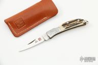 This Osprey has stag scales and engraved stainless steel bolsters. Includes original pouch. Excellent condition.
