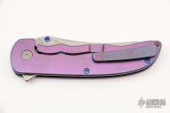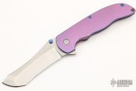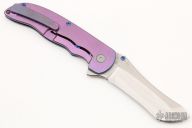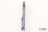 This Norseman (#3193) by John Grimsmo features a tumbled blade with a single titanium thumb stud, notched thumb ramp and flipper. The handle features anodized and crosshatch textured titanium frame with titanium screws. Very smooth action that requires no wrist movement. Nice detent, lockup and blade seating. Rides on ceramic bearings. Knife is in excellent condition, shows no signs of use or carry. Comes with original custom hard case, Nano-Oil, tool, and COA dated Dec 30, 2019.