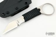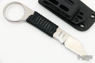 This Ring Fighter by Mickey Yurco features a satin finished blade with .178" blade thickness and .735" blade depth. The handle has black cord wrap over full tang. Comes with a kydex sheath. New from maker at the 2022 USN Gathering.