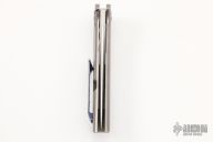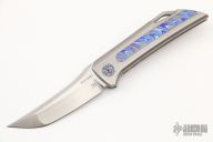 WingMan EDC is proud to introduce the second knife in our continued pursuit to offer an incredible selection of iconic collaborations. The YUREI is unmistakable design by custom knifemaker David Santiago. An all titanium framelock folder with stonewash finish, darkti inlay, pivot and tip up clip with hidden screws. The blade is M390 steel in a tanto edge and gorgeous belt satin finish. The blade utilizes iconic Lee Williams features Lee Williams’ patented Kickstop mechanism. Comes with original box, zippered case, dog tag, pivot tool and papers. Excellent condition.