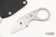 This Necker by Graham Knives features a satin finish blade with notched thumbrest, .180" blade stock, .999" blade depth. Full tang construction with mosaic pins and 1" diameter finger hole. Includes kydex sheath. Excellent condition.