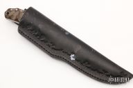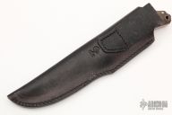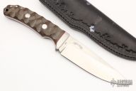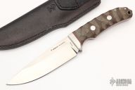 Well designed drop point hunter/utility with sculpted canvas micarta scales for a solid grip.  Brushed stainless guard, pins, and lanyard tube. Full tang construction with thickness of 1/8" and depth of  1 1/4". Comes with black leather sheath. #006. Blade Steel: N690BO Has some light scuffs and scratches, great condition otherwise.