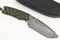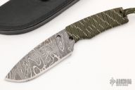 This Navigator Bowie from Joseph Bowen features a satin finished recurve bowie style blade with a sharpened top edge, .147" blade stock and 1.23" blade depth, full tang construction with cord wrapped handle. Comes with leather sheath. Has some light scuffs, otherwise excellent condition.