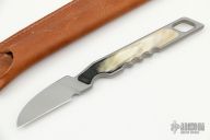 This Buddy by WKRMN features a bead blasted finished blade with .175" blade stock and .646" blade depth, full tang construction with "Cattle" scales (faux horn). Comes with a brown leather sheath. Excellent condition.