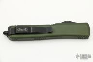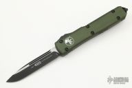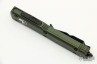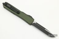 This Ultratech OTF automatic by Microtech features a S/E black finished blade with a standard edge. OD Green aluminum frame with black hardware and stainless steel clip. Glass breaker. Serial number 158386 and dated 01/2020. Comes with original box and papers. Has a couple light scuffs, otherwise excellent condition.