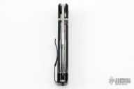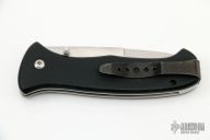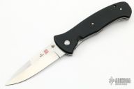 This SERE 2000 Linerlock Folder by Al Mar has a satin finished spear point blade with dual thumb studs. Handle is black G10 over stainless steel liners, holes for a tip up clip, but no clip, and lanyard hole. Has a some light scratches, otherwise excellent condition. Comes with a zippered case.