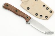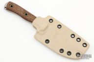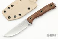 This Mean Street has a bead blasted drop point blade with a full tang construction, .162" Blade Stock.  .969" Blade Depth.  This handle features brown canvas micarta scales. Comes with a kydex sheath, Has been resharpened, very sharp, otherwise excellent condition.