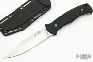 The SERE Operator by Al Mar features a satin finished blade with false top edge, .140" blade stock and 1.120" blade depth, full tang construction. The handle has black FRN scales. Comes with original sheath. Sheath is a little rough, the blade has some scratches, otherwise good condition.