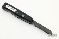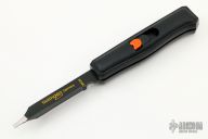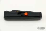 This Electromatic by Crown and Sword features a black coated serrated blade with a screw-driver and scraper. The handle is plastic, red button with a safety, voltage indicator on the back of handle. Comes with original box and papers. Excellent condition. Very interesting piece.