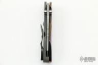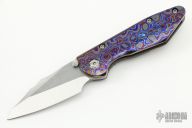 This Mini Fury by Rip Knives features a two-tone Magnacut blade with dual thumbstuds. The handle has a DarkTi and bead blasted titanium frame, backspacer and a zirconium tip up clip, satin finished hardware. Nice detent, lockup and blade seating. Comes with COA. New from maker.
