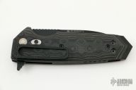 This Elishewitz design flipper by Hogue Knives features a black spearpoint blade. The handle has black/grey/tan G-10 scales with safety. Has black stainless steel liners and pocket clip. Has a few light scuffs, otherwise excellent condition.
