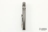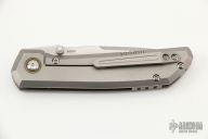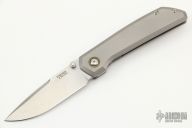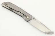This Mula framelock by Enrique Pena features a hand rub satin finished drop point blade with swedge, notched thumbrest and dual thumbstuds. The handle has a bead blasted titanium frame with a titanium backspacer. Matching tip up titanium clip. Comes with original box.  Excellent Condition.