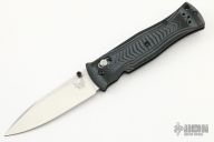 This Model 531 from Benchmade features a stonewashed spear point blade with swedge and dual thumb studs. The handle is comprised of black and gray G10 and stainless steel liners. Stainless steel reversible tip up clip. Lanyard hole in pommel. Excellent condition.