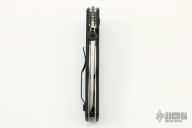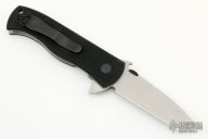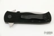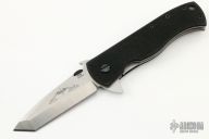 This CQC-7 from Emerson Knives features a two-tone chisel ground tanto style blade with stonewashed flats and satin grinds. The blade has a swedge, knurled thumb disc, wave features and flipper. The handle has a black G10 scales over titanium liners and black barrel spacers. Black tip up steel clip and lanyard hole in pommel. Great blade seating, detent and lock up. Excellent condition.