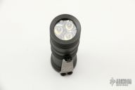 This Ion flashlight from Mitch Lum/Laulima Metal Craft and Joshua Dawson features an aluminum body. 219C 4000K triple emitter. Carclo Narrow Spot optic. Flat sapphire watch "glass" window.  Red Dragon Driver. Uses a single 18350 battery. Battery is not included.  This piece comes with a custom pouch and COA, dated 09/02/22.  New from maker.