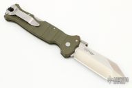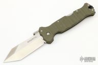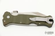 This Immortal by Cold Steel features a satin finished blade with thumbdisc. The handle has green G-10 scales with a stainless steel lock. Tip up stainless steel reversible clip. Excellent condition.