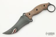 This Triceratops by the Busse features a Shark cerakoted blade with sharpened top edge, .207" blade stock, 1.785" blade depth, full tang construction with natural canvas micarta scales and a lanyard hole. New from maker.
