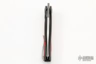 This Apex Front Flipper from Brian Nadeau features a satin finished blade with a thumbhole, flipper and notched thumbrest. The handle is comprised of a black tumbled titanium frame with red aluminum inlays, satin titanium tip up clip. Rides on bearings, nice detent, lockup and blade seating, stainless lockface insert. Comes with original box and papers. New from maker.