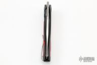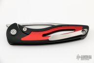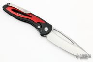 This Apex Front Flipper from Brian Nadeau features a satin finished blade with a thumbhole, flipper and notched thumbrest. The handle is comprised of a black tumbled titanium frame with red aluminum inlays, satin titanium tip up clip. Rides on bearings, nice detent, lockup and blade seating, stainless lockface insert. Comes with original box and papers. New from maker.