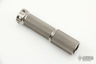 This Titanium flashlight from Tain Fashlights features a knurled titanium body with blue and green tritium in the tail cap (7X). Has some light scuffs and scratches, otherwise Excellent condition.