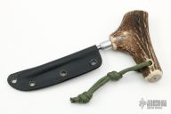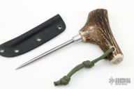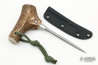 This Push Spike by GHK features a differentially hardened Stubbs Tool Steel tool steel spike with .200" diameter. The handle is stag with an aluminum ferrule. Comes with a kydex sheath. New from maker.