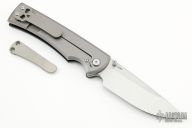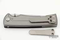 This Chaves Ultramar Liberation Drop point features a satin finished blade with the Chaves logo. The handle is made up of black G10, tumbled titanium, skull pocket clip (positioned for tip up carry), and a titanium backspacer.  Includes an extra Titanium pocket clip. New From Maker!
