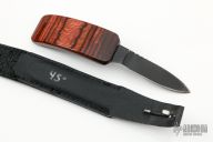 Black Leather belt with buckle knife by Daniel Valois. Blade slides into concealed kydex sheath and is curved to follow the contour of the waist. The handle is dymondwood. Has some scratches on the blade, otherwise excellent condition. 45” belt. This is part of the last of the Daniel Valois Estate.