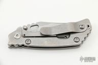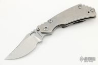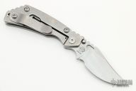 This PT Persian by Mick Strider features a stonewashed blade with notched thumbrest and thumbhole. The handle has a stonewash finished titanium frame with matching tip up clip. New from maker at the 2022 USN Gathering.
