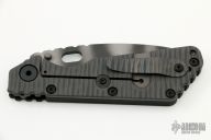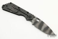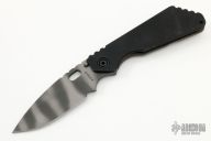This SMF framelock folder by Strider features a tiger stripe blade and a black aluminum and flamed titanium frame and tip up titanium clip. Includes a Hinderer "Lock Bar Stabilizer" for maximum reverse lock retention. Nice detent, lockup and blade seating. New condition.