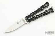 This Spyderfly 2 Balisong by Spyderco has a satin finished blade. Handle is black G10 over stainless steel liners and stainless steel paper-clip style pocket clip. Excellent condition.