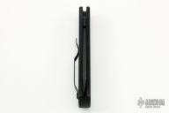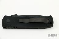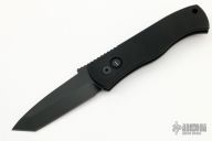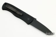 This Emerson/Pro-Tech CQC7 automatic has a chisel ground black sterile blade with a plain edge and a solid black aluminum handle with a tritium push button insert.  Black stainless steel clip. Coil spring. New from Maker at the 2022 USN Gathering.