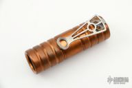 This Roll Bar by Strong Lights LLC features solid Copper construction, and titanium pocket clip. Signs of carry but overall great condition. Includes a 18350 lithium ion battery.