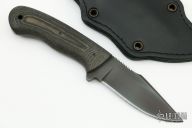 Jason Knight Design by Winkler Knives Knife Specifications Blade steel: 80CrV2 Black oxide no-glare finish Blade length: 3 1/2" Overall length: 8" Blade thickness: .189" Full skeletonized tang Thumb index file work Sheath Lined Kydex® with leather cover Spring steel, belt clip Designed for multiple carry options (See our Info page for carry options) Excellent condition with original packaging.