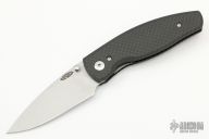This Neutron Linerlock by Three Rivers features a stonewash finished blade with dual thumbstuds. The handle has carbon fiber scales, titanium liners with a matching tip up reversible clip. Nice detent, lockup and blade seating. Comes with original box, and papers. Excellent condition.