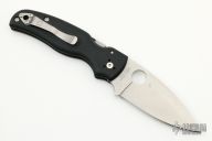 This Shaman Pln by Spyderco features a stonewashed spear point blade with notched thumb and finger rests, thumbhole. The handle has black G-10 scales, inlaid stainless steel liners and a stonewashed stainless steel backspacer, 4-way reversible stainless steel clip, lanyard hole at the butt. Excellent condition. Comes with original box and papers.