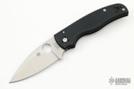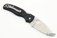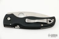 This Shaman Pln by Spyderco features a stonewashed spear point blade with notched thumb and finger rests, thumbhole. The handle has black G-10 scales, inlaid stainless steel liners and a stonewashed stainless steel backspacer, 4-way reversible stainless steel clip, lanyard hole at the butt. Excellent condition. Comes with original box and papers.