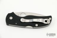 This Native5 folder by Spyderco Knives has a satin finish blade with thumbhole. The handle has black G-10 scales, stainless steel liners, and a 4-way reversible stainless steel clip. Nice smooth action. Comes with original box and papers. Excellent condition.