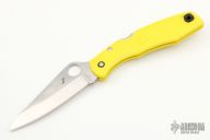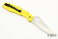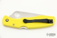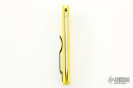 This Pacific Salt Lockback Folder has a satin finished clip point H-1 blade with thumb hole and notched thumb ramp. Handle is yellow FRN with black FRN tip up clip. Blade Steel: Satin Finished H-1. Excellent Condition.