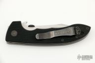 This Emerson Horseman linerlock flipper has a stonewashed blade with swedge, thumb disc, notched thumbrest, wave feature and flipper. The handle is comprised of black G10 scales over titanium liners, black stainless steel clip. #2538. Has a couple light scratches, otherwise excellent condition.  Comes with original box and papers.