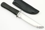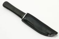 This Tanto by Kuzan Oda was produced by Pacific Cutlery in Japan. It has a satin finished blade with a simulated hamon, .178" blade stock and 1.194" blade depth, hidden tang construction with a black rubber handle. Comes with a black leather sheath. Excellent condition.