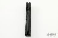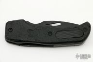 This Prototype Reverse Liner Lock folder by A. Daniel Valois features a black partially serrated chisel ground tanto blade with thumbhole. The handle has "Gator Hyde" rubber scales over black titanium liners. The pocket clip may have been the first of its kind, Valois Flush Mount Pocket Clip. This linerlock is released on the back. Some scratches on blade and frame, otherwise good condition. This is one of the last pieces from Daniel Valois's Estate.