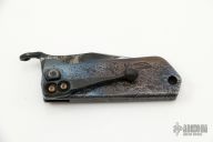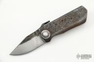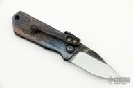 This Friction Folder by Nick Rossi features a forged blade with curly Q friction folder style opening. The handle is a single piece of forged mild steel that is naturally patina'd and has a forge finished texture, tip down forged clip. Has M.S. Stamp and a developing patina. Item has been generously coated in RenWax. Excellent condition.
