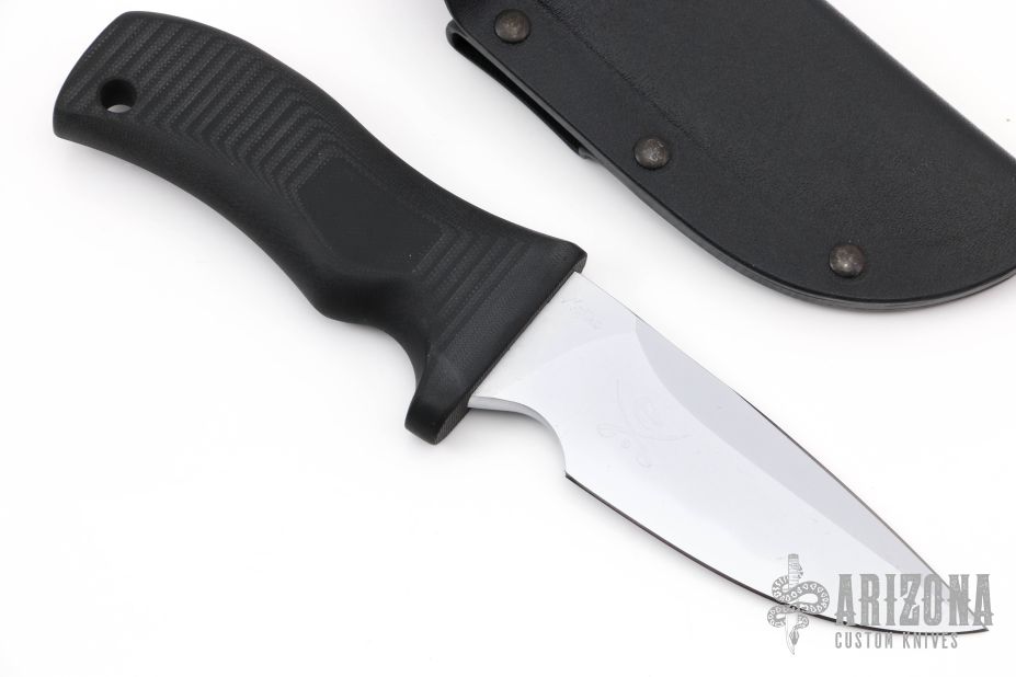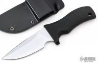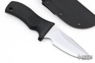 "Outstanding fighter in a compact design. Selectively tempered, the Hell Toad has a Rockwell C-scale hardness of 62 at the edge (as hard as a file), and HRC 50-54 throughout the spine and hidden full tang. Hard chrome blade finish. Sharpened top edge. 1/4" blade thickness and 1.496" blade depth.The ergonomic grip indexes the blade in the user's hand, thus letting the user know how the blade is presented, even in the dark. MDK uses a glass/epoxy composite grip material that is compression bonded to the hidden full tang. With a compressive yield strength of 79,000 psi, the grip can withstand tremendous punishment with no damage. The composite grip material provides 1,000 volts per mil (.001") dielectric strength that electricaly isolates the user from the blade. Our grip material is also impervious to virtually all chemicals and solvents."