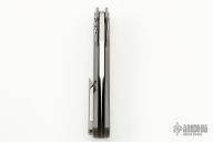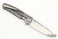 This M1 by Matt Diskin was made by Reate Knives, it features a satin finished blade with fullers and flipper. The handle has a bead blasted titanium frame with carbon fiber inlays, tip up titanium clip, stainless lockface insert, overtravel stop. Rides on bearings, nice detent, lockup and blade seating. New from maker.