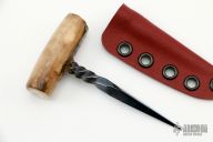 This Walrus Ivory Spike by Hugh Bartrug features a twisted hand forged spike with a walrus ivory handle. Comes with a kydex sheath. Excellent condition.