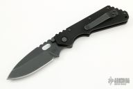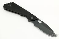 This is a Buck made Strider SNG with black coated blade and black G-10 scales, stainless steel liners, black coated stainless steel tip up reversible carry clip. Notched thumbrest area and front/rear of handle provide a solid grip. Includes a Buck box that is not original.  Excellent condition.